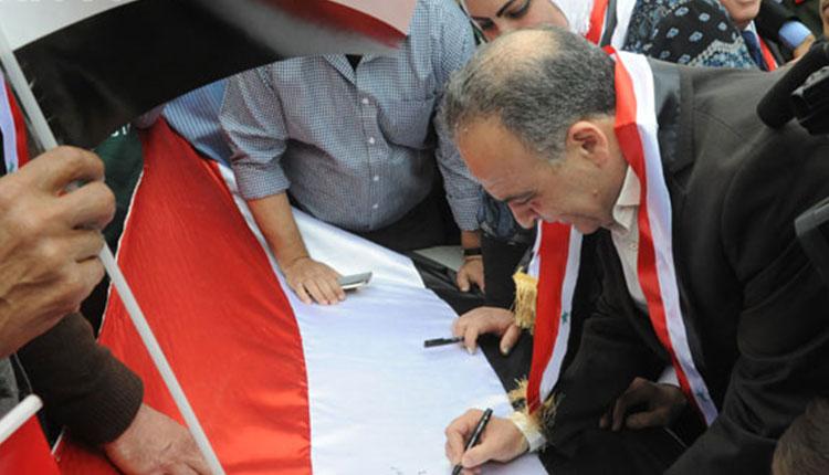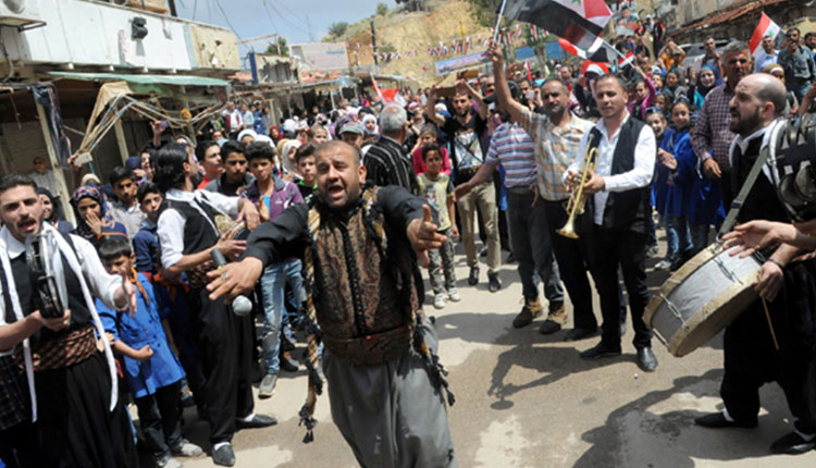 مردم و مسئولان شهرکهای مضایا، الزبدانی، بقین، بلودان و التکیه که اخیرا خالی از گروههای مسلح شدهاند از «عماد خمیس» استقبال کردند.