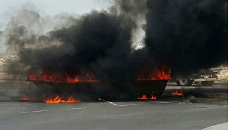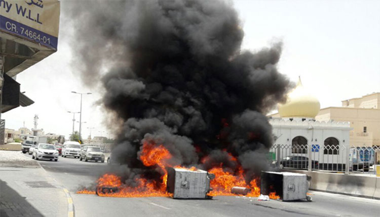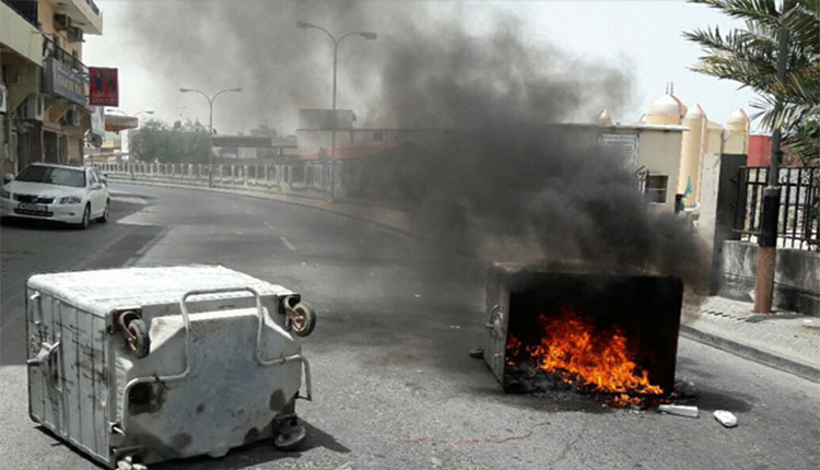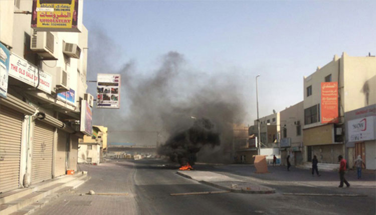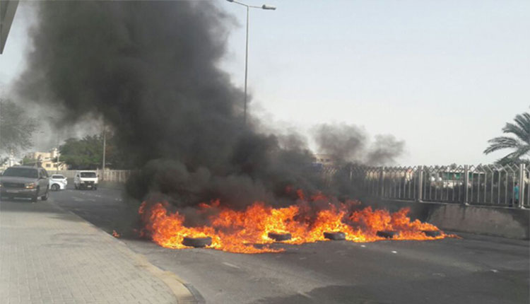 مبارزان خشمگین بحرین با بستن خیابانهای الدراز دهها لاستیک را به آتش کشیدند.