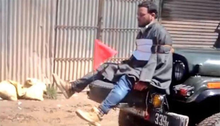 استفاده سپر انسانی نظامیان هندی از یک مسلمان کشمیری